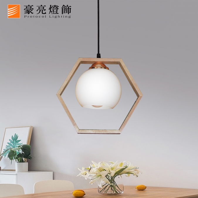 原木/幾何(六角型)單吊燈
