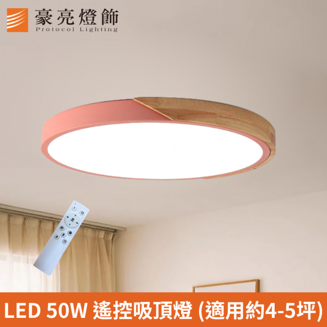 LED 50W木紋+粉/調光-調色吸頂燈(附遙控器)