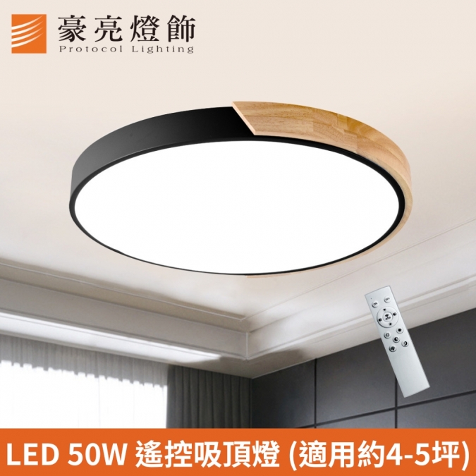 LED 50W木紋+黑/調光-調色吸頂燈(附遙控器)