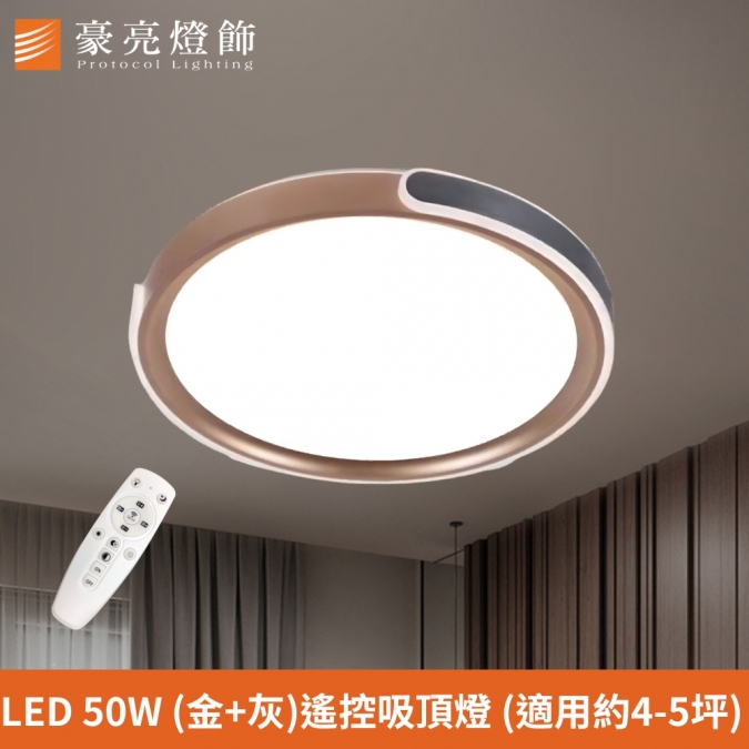 LED 50W(金+灰) 知性調光調色吸頂燈 (附遙控器)