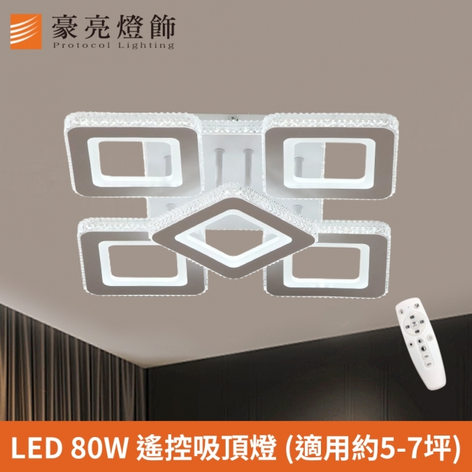 LED 80W 冰川 5 燈調光調色吸頂燈(附遙控器)