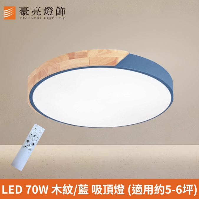 LED 70W 木紋-藍/調光調色吸頂燈(附遙控器)
