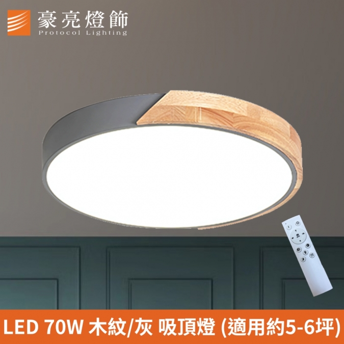 LED 70W 木紋-灰/調光調色吸頂燈(附遙控器)