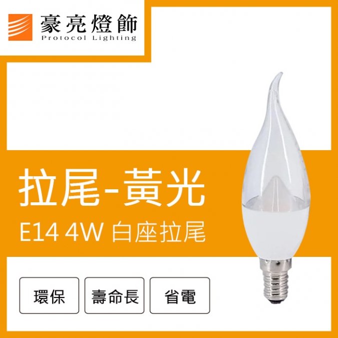 LED E14 4W 白座拉尾燈泡 黃光 (CNS認證)