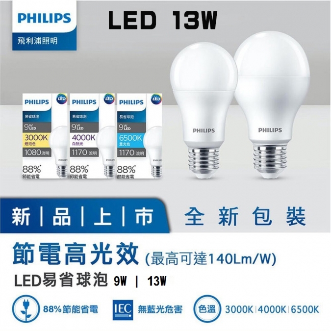 PHILIPS飛利浦LED E27 13W燈泡 白光/黃光/自然光