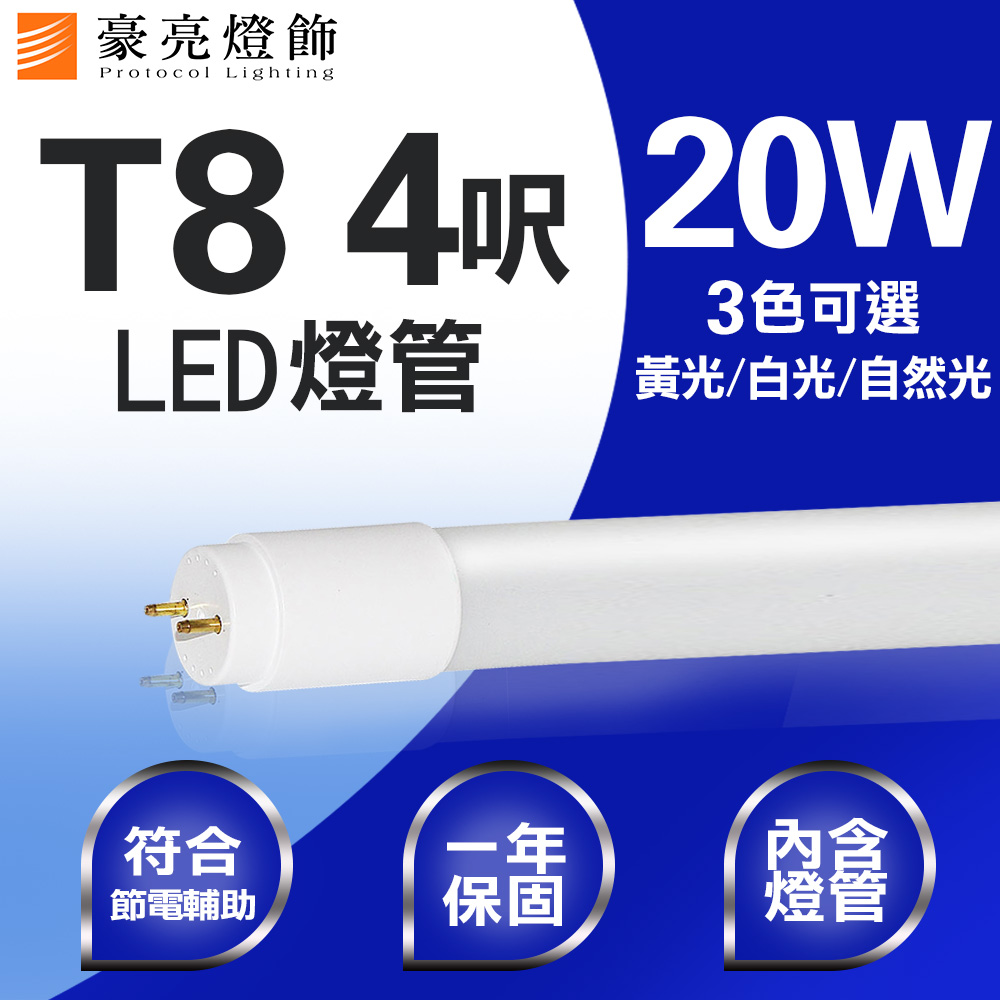 T8 LED 20W 4呎 (白光/黃光/自然光) (限自取)
