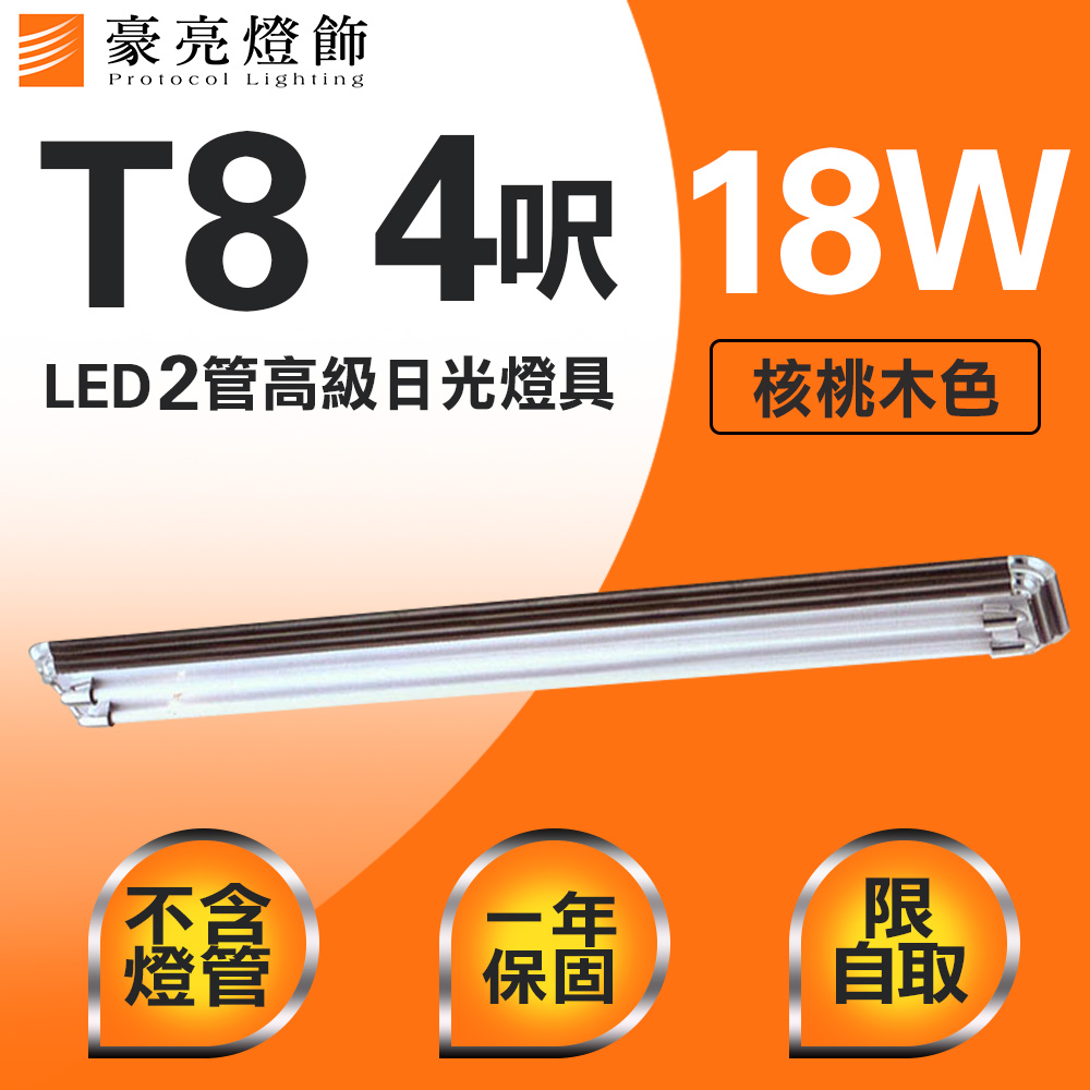 品名 T8 LED 18W 4呎 2管高級日光燈具(限自取/不寄送) 描述 長金屬燈體烤核桃木色 尺寸 長139cm*寬23cm*高11cm 光源 另購T8 4呎燈管*2 附小夜燈 2W*1 附電子開關 適用 皆可