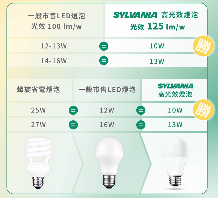 | 描述 | * 發光效率升級,低瓦數、高流明最省電! * 達國家節能標章標準,13W亮度 = 27W螺旋燈泡 = 他牌LED16W燈泡 * 最護眼!無藍光危害國家認證,遠離黃斑部病變 * 無可視頻閃,降低長時間用眼疲勞感銷售重點 * 廣角型發光角度,適用各種空間 * 通過國家CNS合格認證、符合歐盟RoHS無毒標準 |