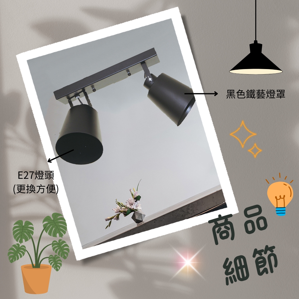 新簡易2燈 (黑罩) 吸頂燈