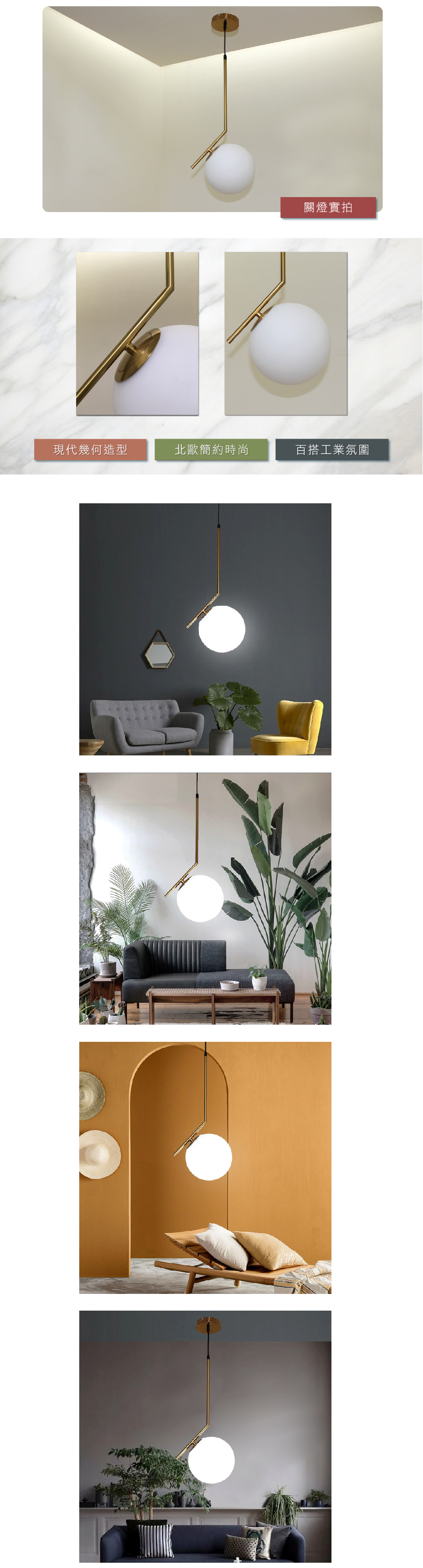 品名 米德蘭單吊燈 (附三色光燈泡) 材質 金屬電鍍燈體、玻璃燈罩 尺寸 燈體約27cm * 20cm 燈罩高約55cm 附線長約 90cm (可調整) 光源 內附LED 6W三色光燈泡 *1 適用 約1-2坪