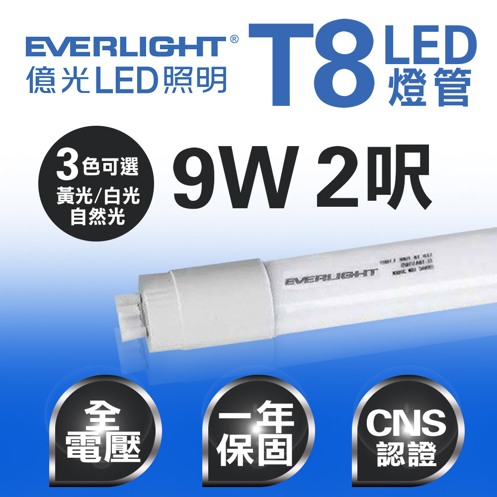 品名 億光T8 LED9W 2呎 尺寸 直徑25mm*長1594mm 光源 色溫:3000 / 4000 / 6500 流明:850~900Lm 功率:18W 演色性:≧80 角度:140° 適用電壓:100~240VAC 壽命:25,000小時 適用 皆可/不需外加安定器