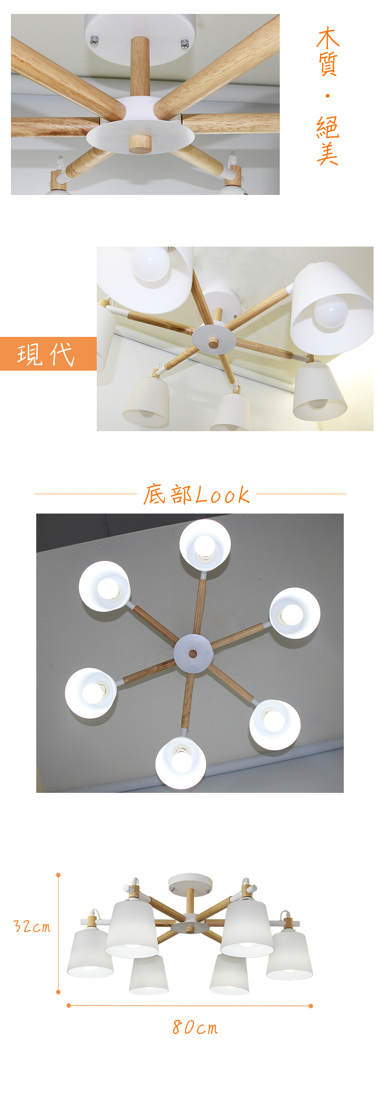 瑞典風6燈半吸頂燈