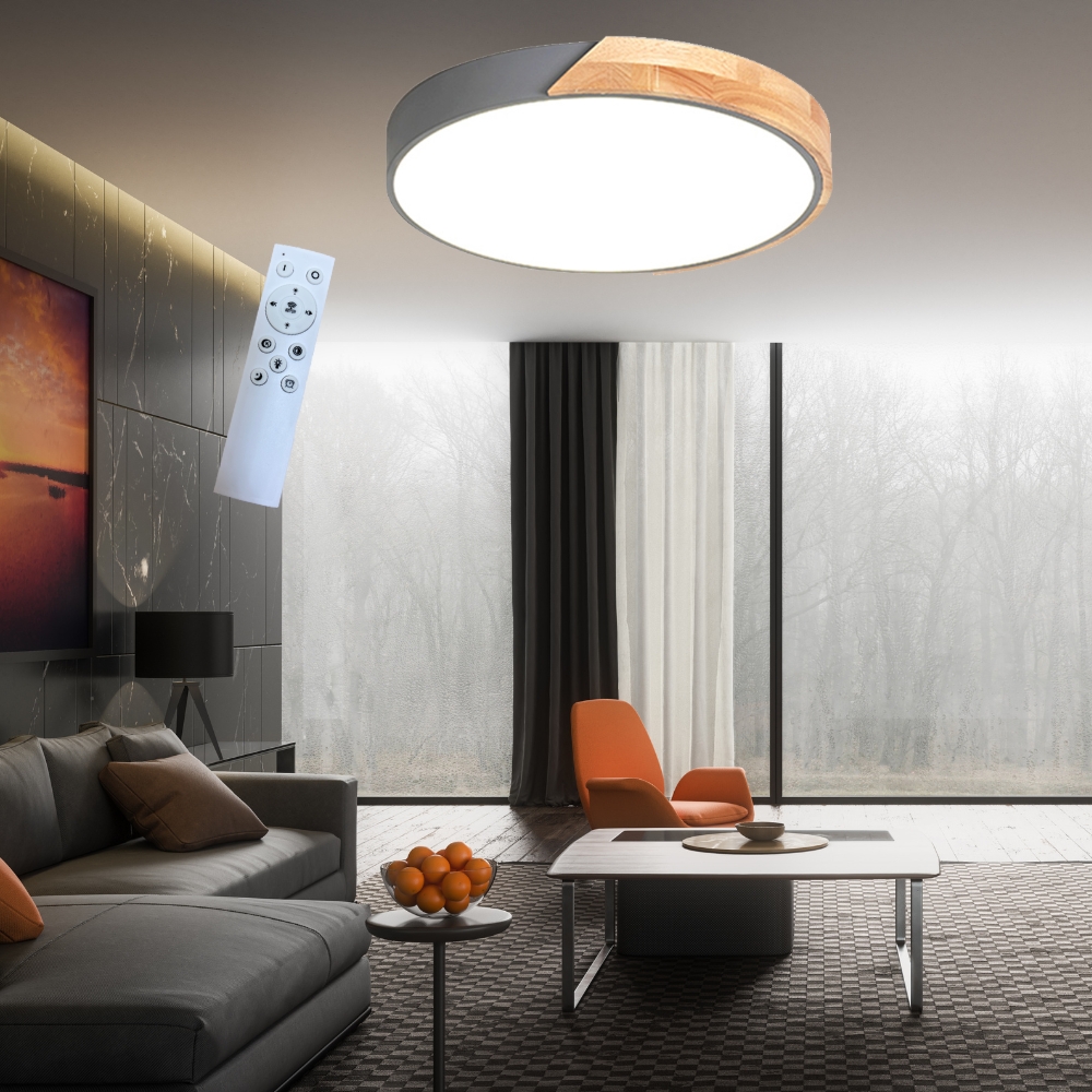 品名 LED 70W 木紋-灰/調光調色吸頂燈(附遙控器) 材質 金屬烤漆/木質燈體、壓克力燈罩 尺寸 長寬約 62 cm * 高約 6 cm 光源 內附LED 70W光源 (附遙控器可無極調光) 適用 適用5-6坪