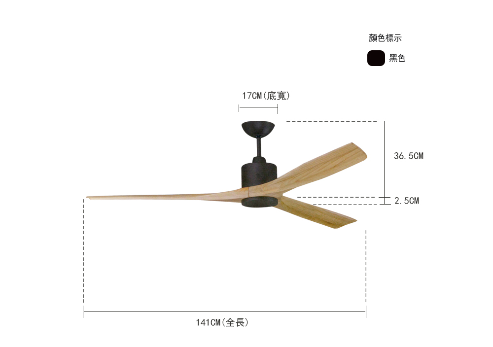 | 描述 | 吊扇規格:57吋 DC 馬達165 x 30 mm 吊扇尺寸: Ø 1410 mm × H 390 mm 材質:平光黑 梧桐木 吊扇最大功率 : 55 W 風量:13977 CFM 重量:約 6.2 KG 特色:正反轉功能,DC省電變頻 國家檢驗標準:通過CNS13783/CNS60335驗證 |
