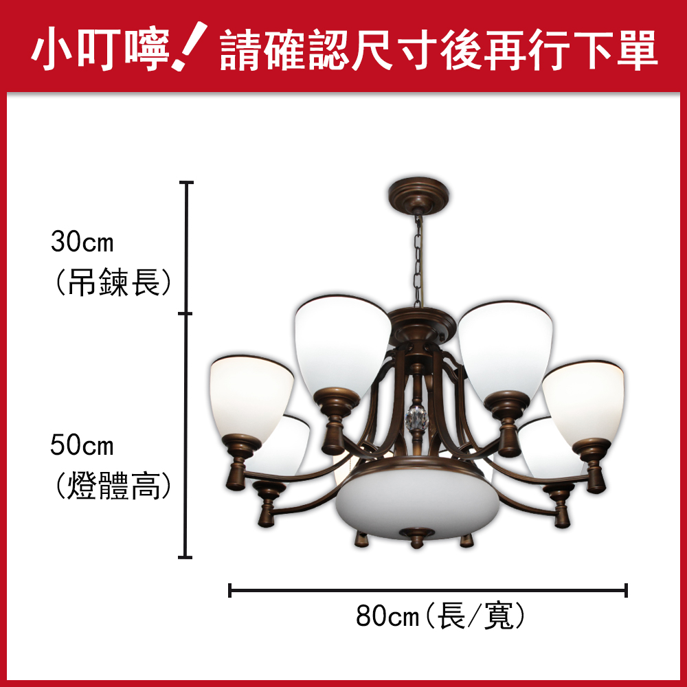 品名 聖羅倫斯 8+3 IC 吊燈 材質 金屬燈體/8+1隻玻璃燈罩 尺寸 長80cm * 寬80cm * 高50cm(附吊鍊約30cm) 光源 另購E27燈泡 *8 + E27小夜燈*3 (附IC電子開關) 適用 約7-9坪
