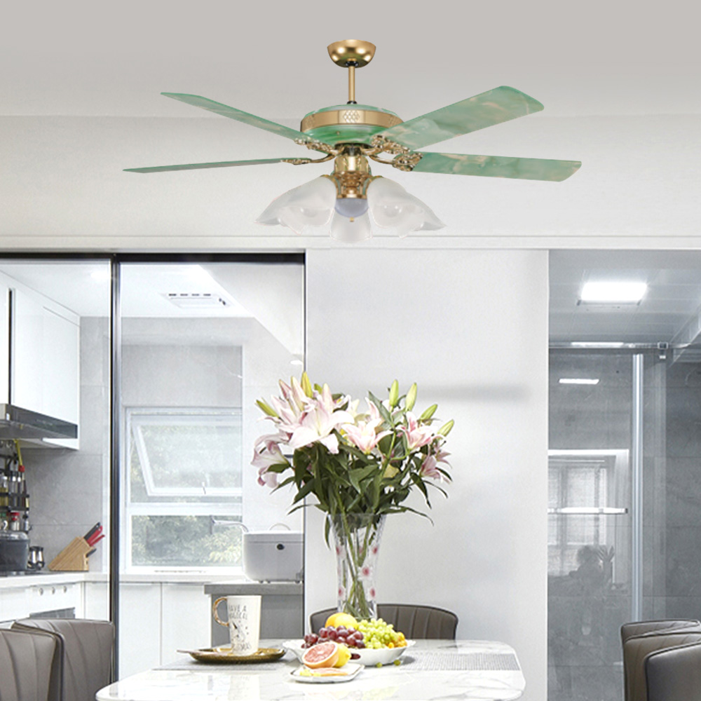 52吋 沖繩吊扇燈/手拉式/5+1燈(P.C)-青玉石(21233A)【台灣製造】