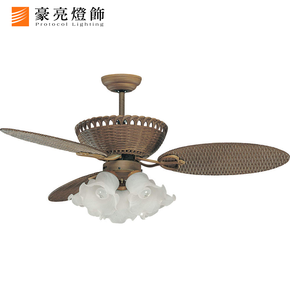 品名 52吋 邁阿密吊扇燈/附遙控/5燈(G.S.+IC) 描述 吊扇規格:52吋 Ø188×t12 燈具規格:5燈/I.C/玻璃燈罩 光源 請另選購5只E27燈頭燈泡 尺寸 直徑:1200mm×高度:540mm 附件 遙控器