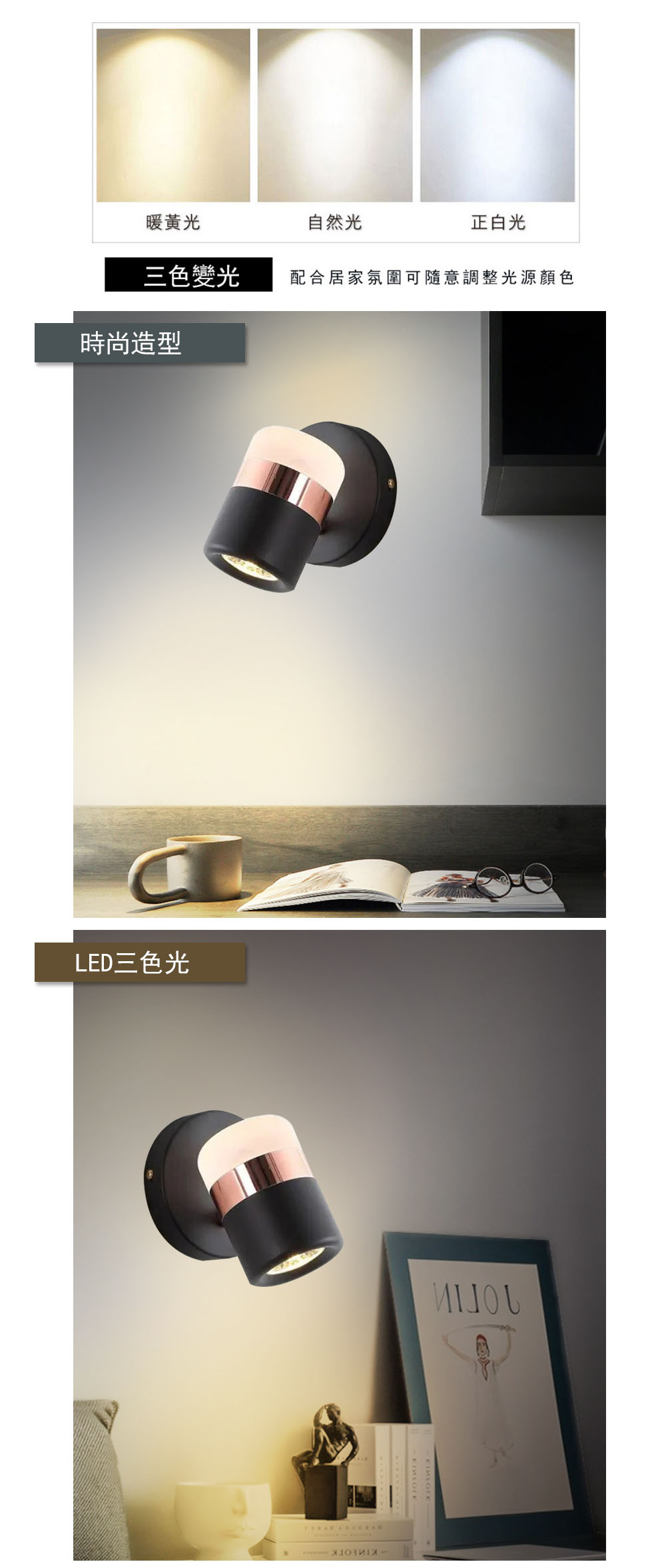 品名 LED 15W 艾曼達/黑+金(三色光)吸/壁兩用燈 材質 (黑+金)金屬燈體 尺寸 長 10cm * 寬 8cm * 深 16cm (吸頂盤約12cm) 光源 內附LED15W(可壁切三色變光:白/黃/自然光) 適用 約1-2坪