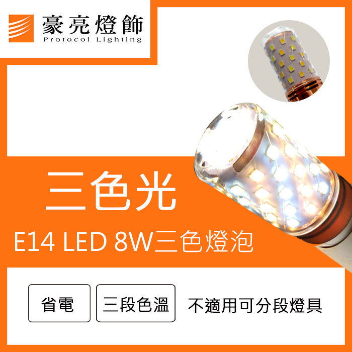 | 品名 | LED E14 8W 三色燈泡 |