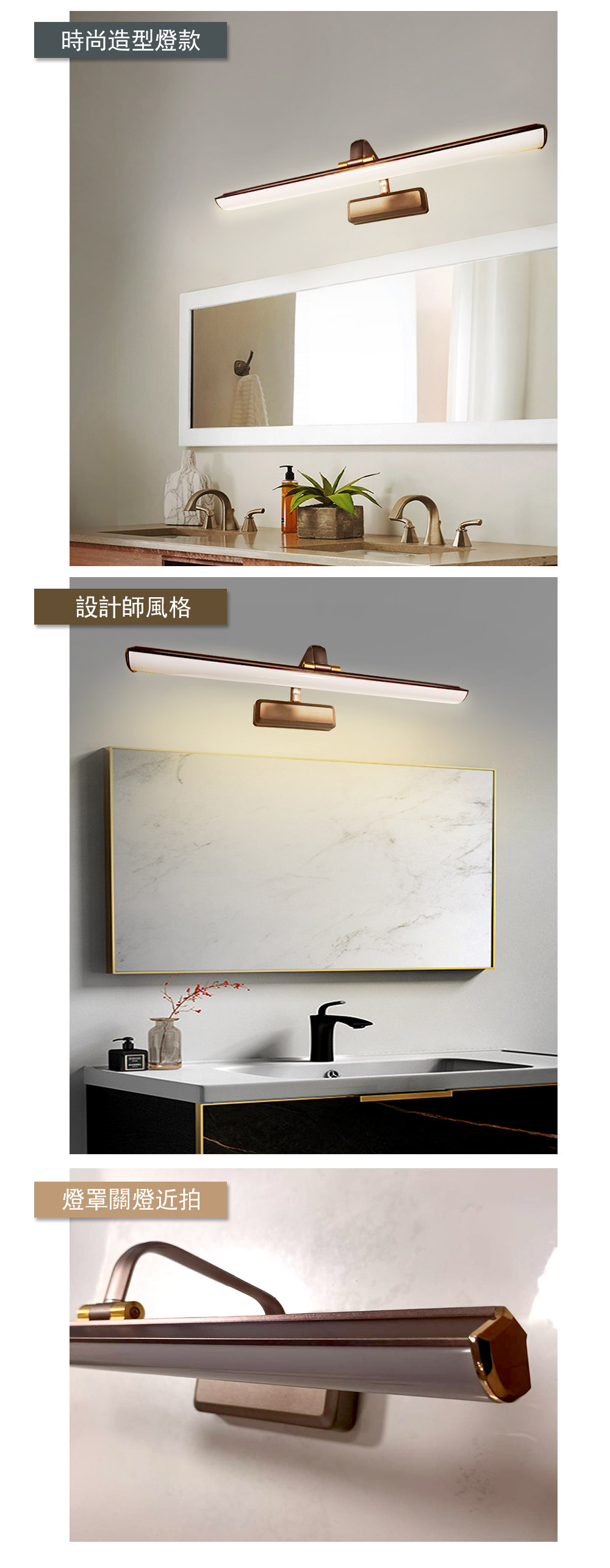 品名 LED10W迪歐/咖啡色(鏡前/璧畫)燈-三色光 材質 金屬燈體 尺寸 燈具: 長約 56cm * 最寬約20cm (底盤長18cm * 寬 6cm) 光源 內附LED10W 三色光光源 (壁切變光:白/黃/自然光) 適用 約1坪內 建議放在有裝潢的梯間/走廊/化妝間...等空間 *購買前請注意底盤大小是否可安裝*