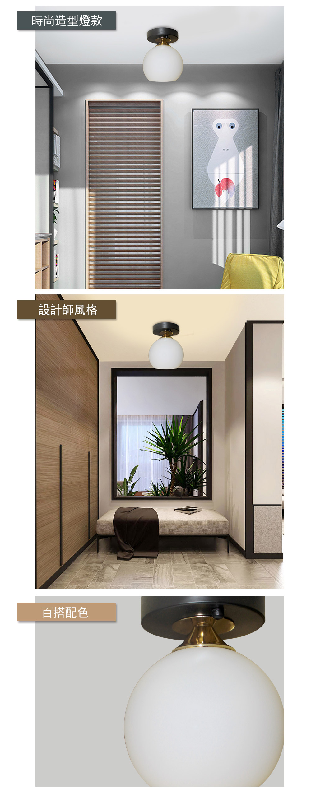 金屬烤漆燈體/玻璃燈罩*1