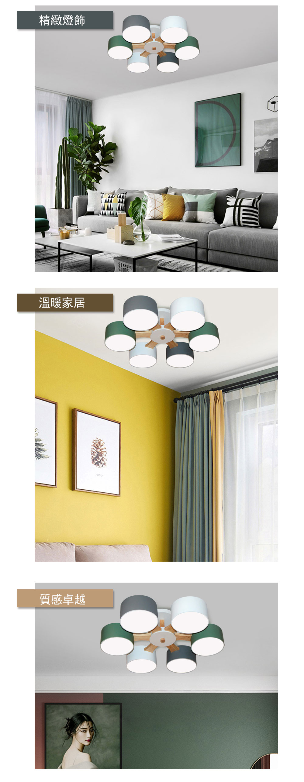 材質 木頭+金屬:白/綠/灰 烤漆燈體
