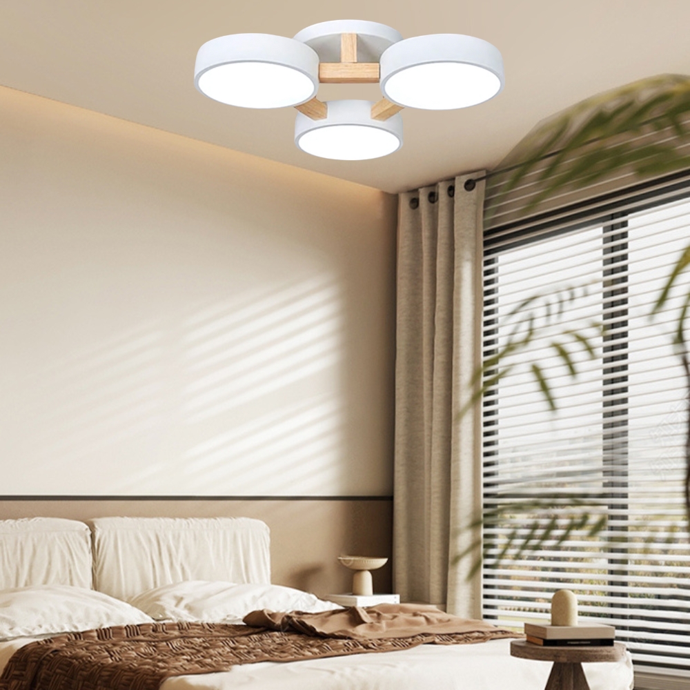 品名 馬卡龍/原木+白罩(LED 45W 三色光)3燈半吸頂燈 材質 金屬烤漆、壓克力燈罩 尺寸 長寬 50 cm * 高 10 cm 光源 內附LED45W 三色光源(白光/黃光/自然光) 適用 約3-4坪