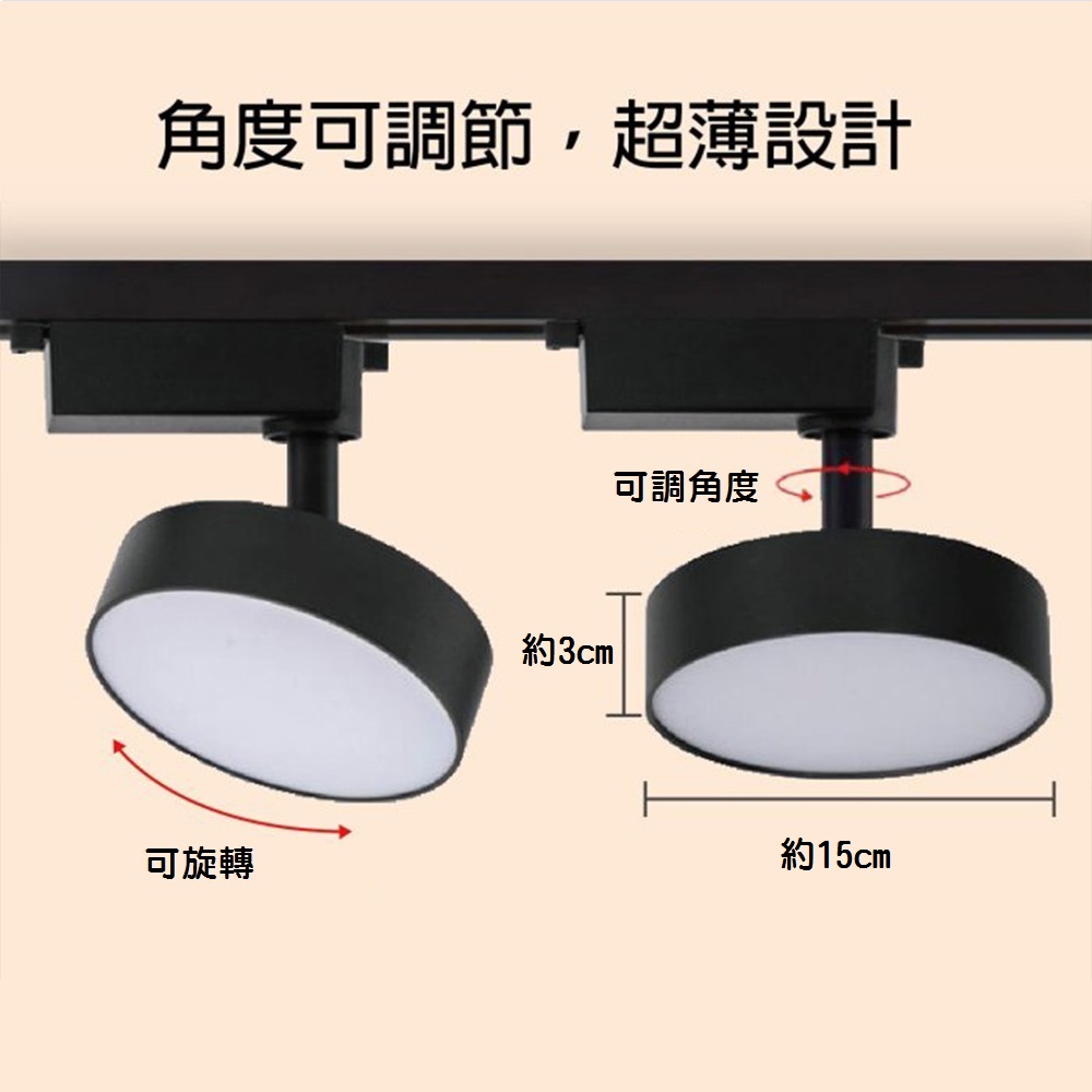 品名 LED 20W泛光型軌道燈-全電壓 (三色光可選) 描述 金屬烤漆、可調整角度 尺寸 直徑約15cm * 高約12cm 光源 內附 20W LED光源 (可選白光/黃光/自然光) 適用 110V-240V