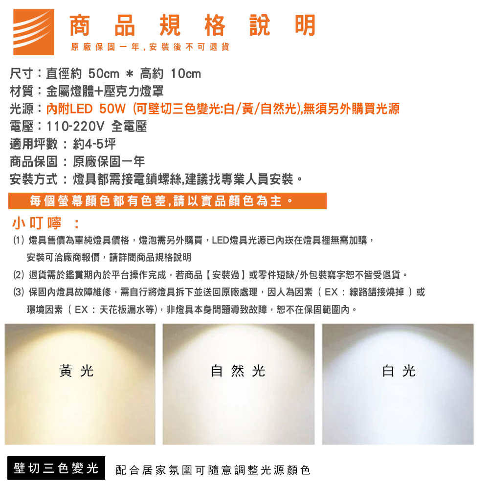 LED 50W(金+灰) 純粹吸頂燈(三色光)