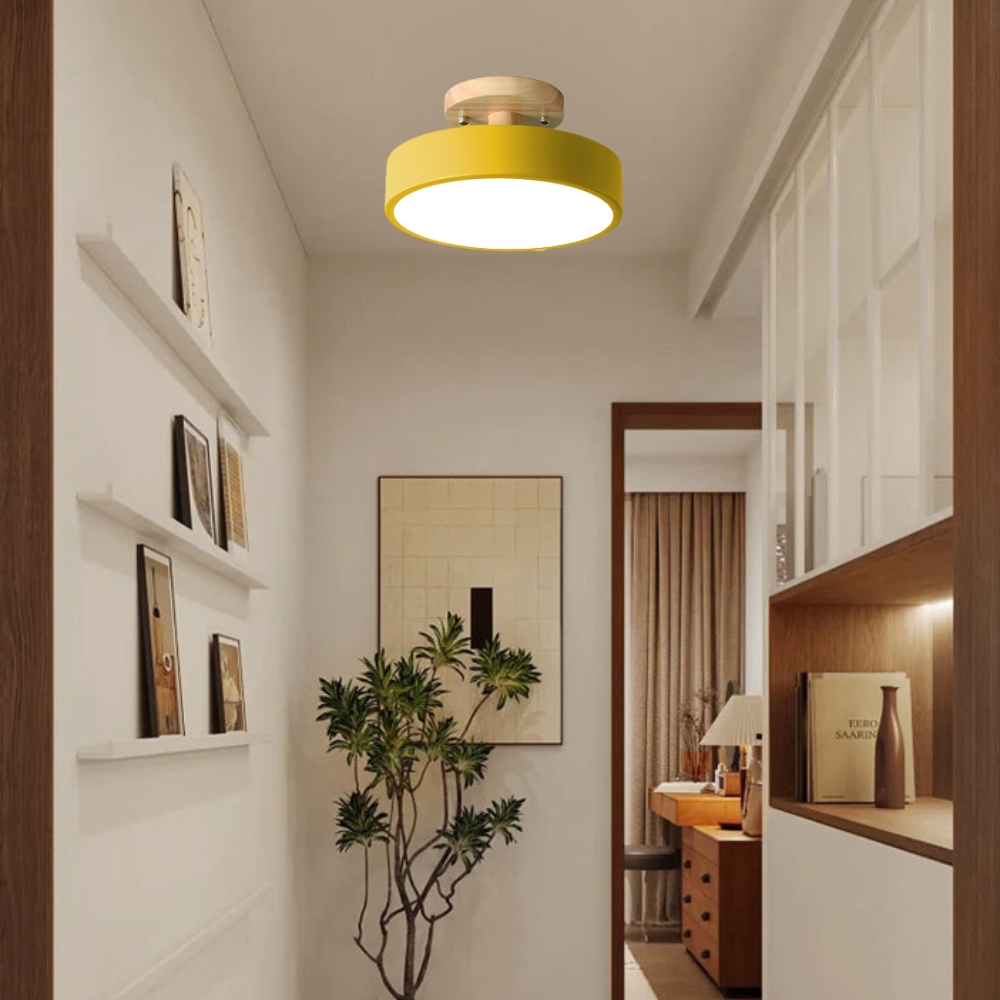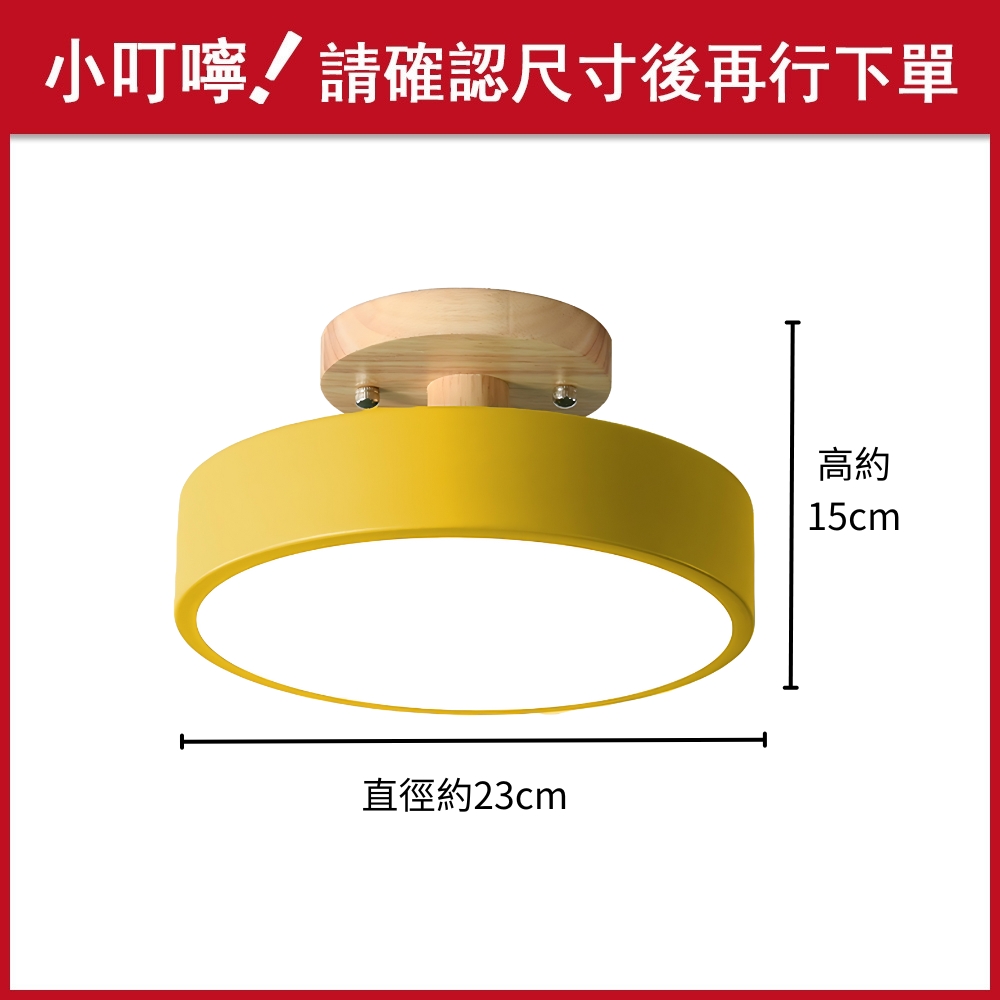 品名 馬卡龍47號LED 16W(黃罩)吸頂燈(三色光) 材質 金屬烤漆燈體、壓克力燈罩 尺寸 直徑約 23 cm * 高約15 cm 光源 內附LED 16W三段光源 (白光/黃光/自然光) 適用 約1-2坪