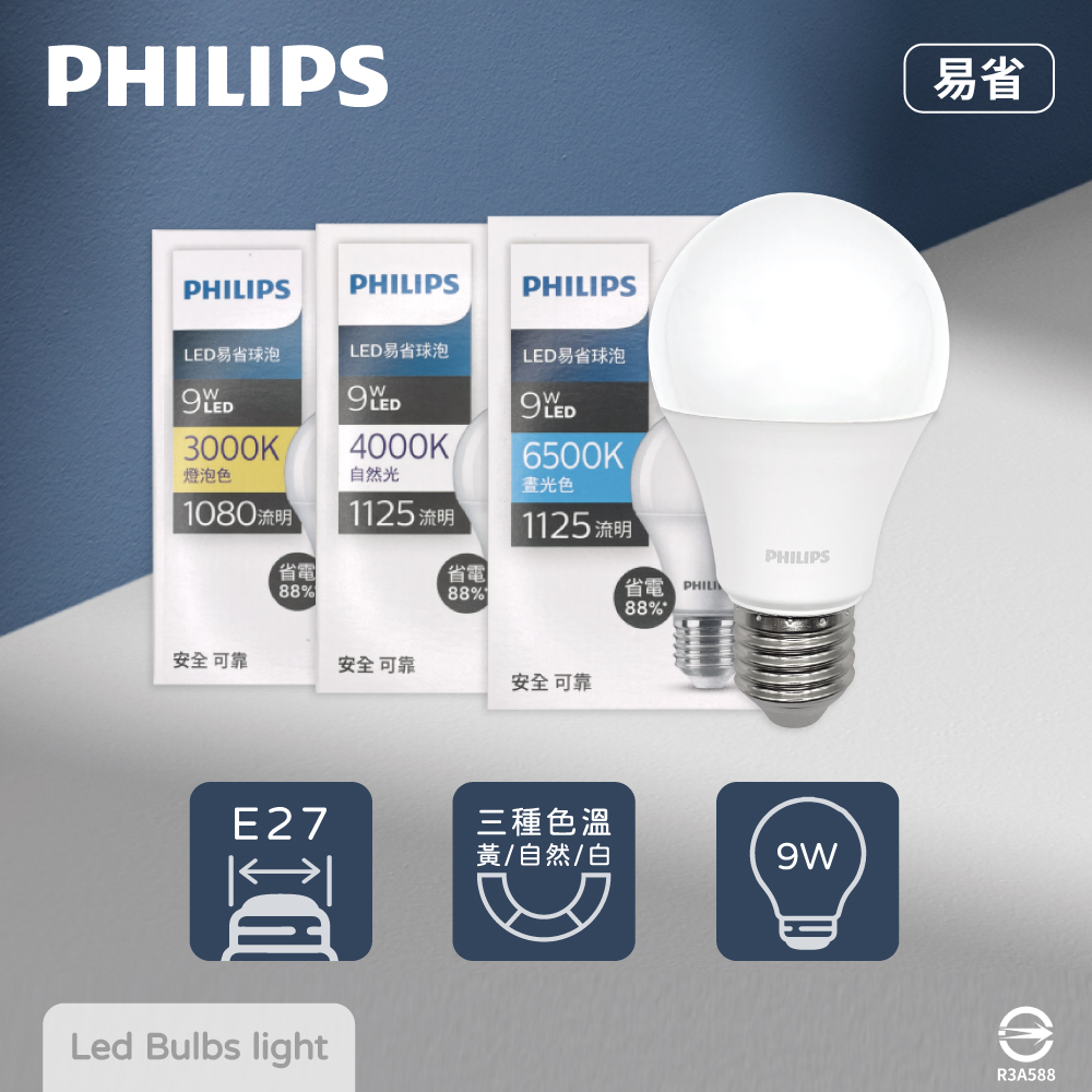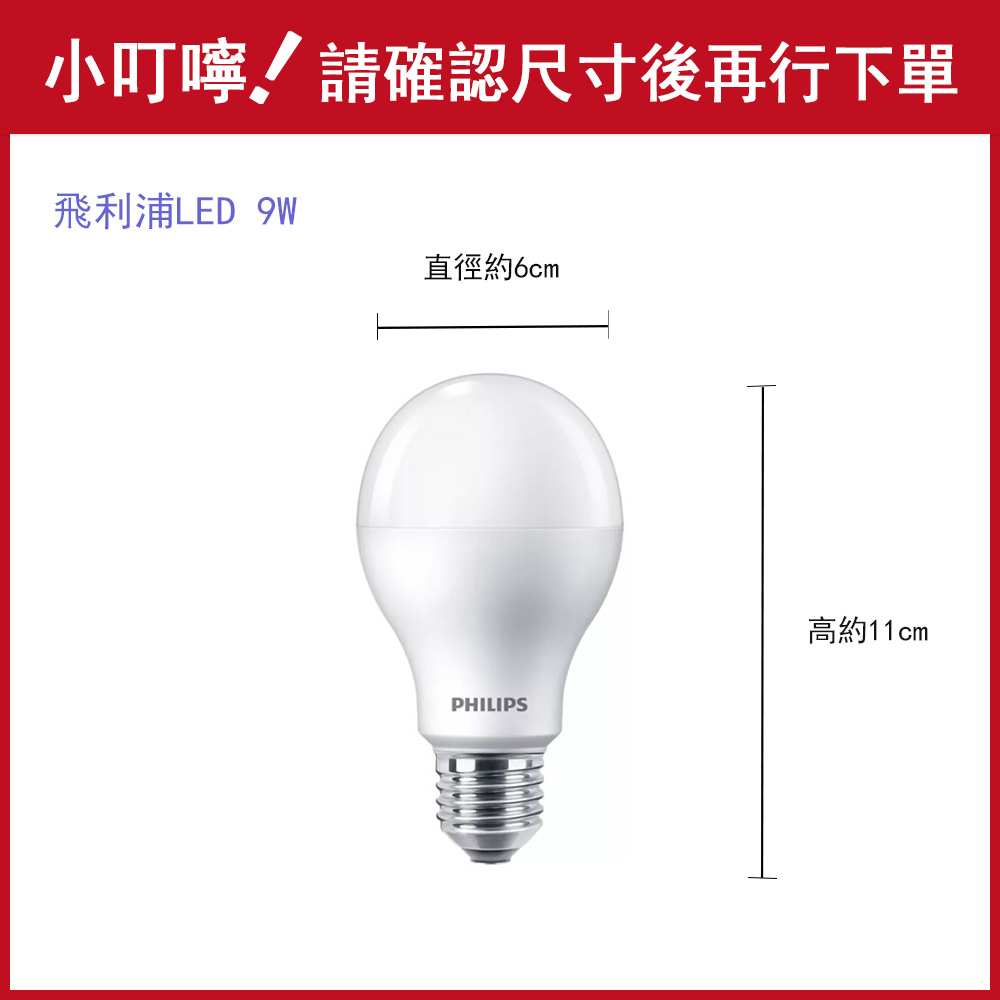 | 品名 | PHILIPS 飛利浦 LED E27 9W燈泡 (白光/黃光/自然光) |