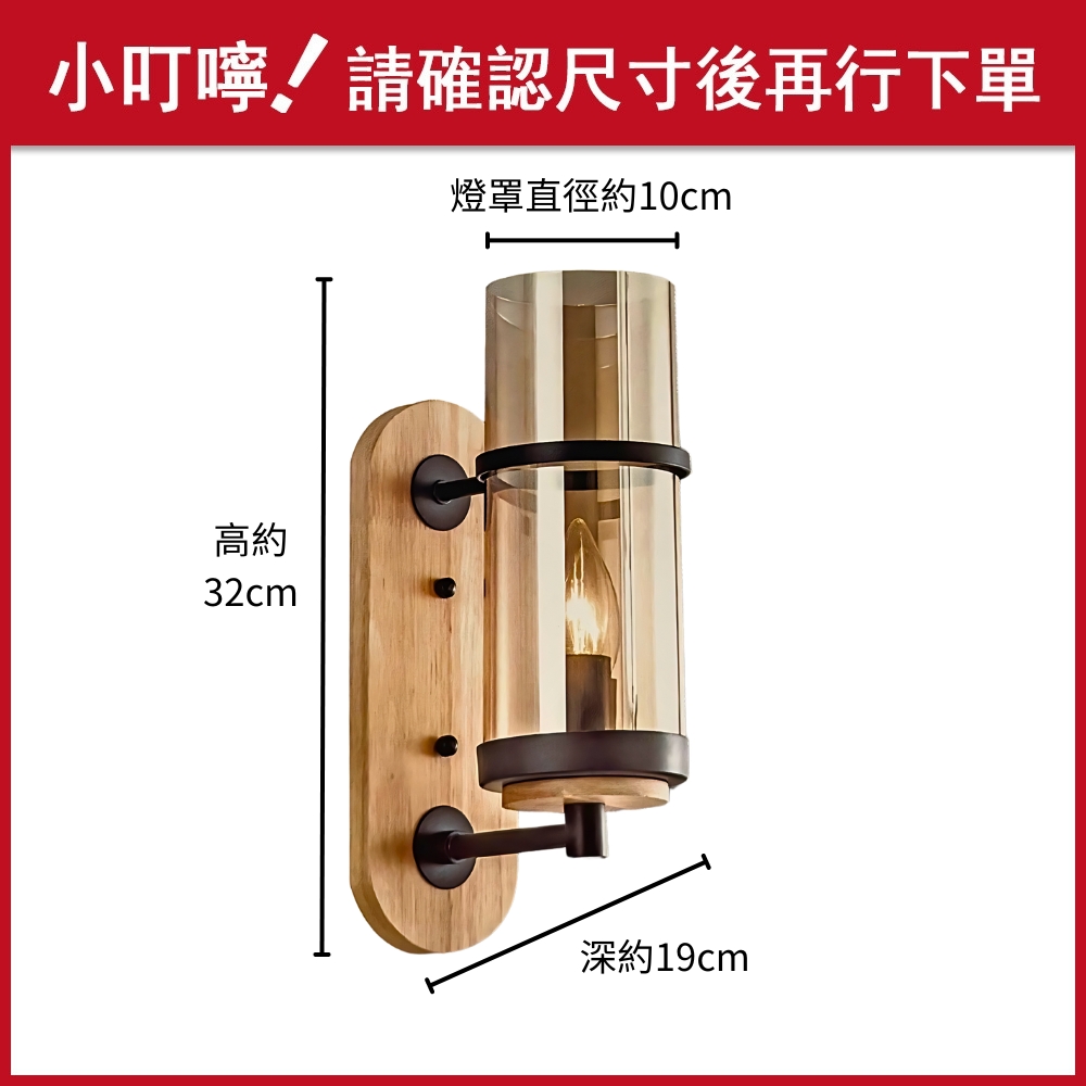 材質 原木/鐵材烤黑漆/玻璃燈罩
