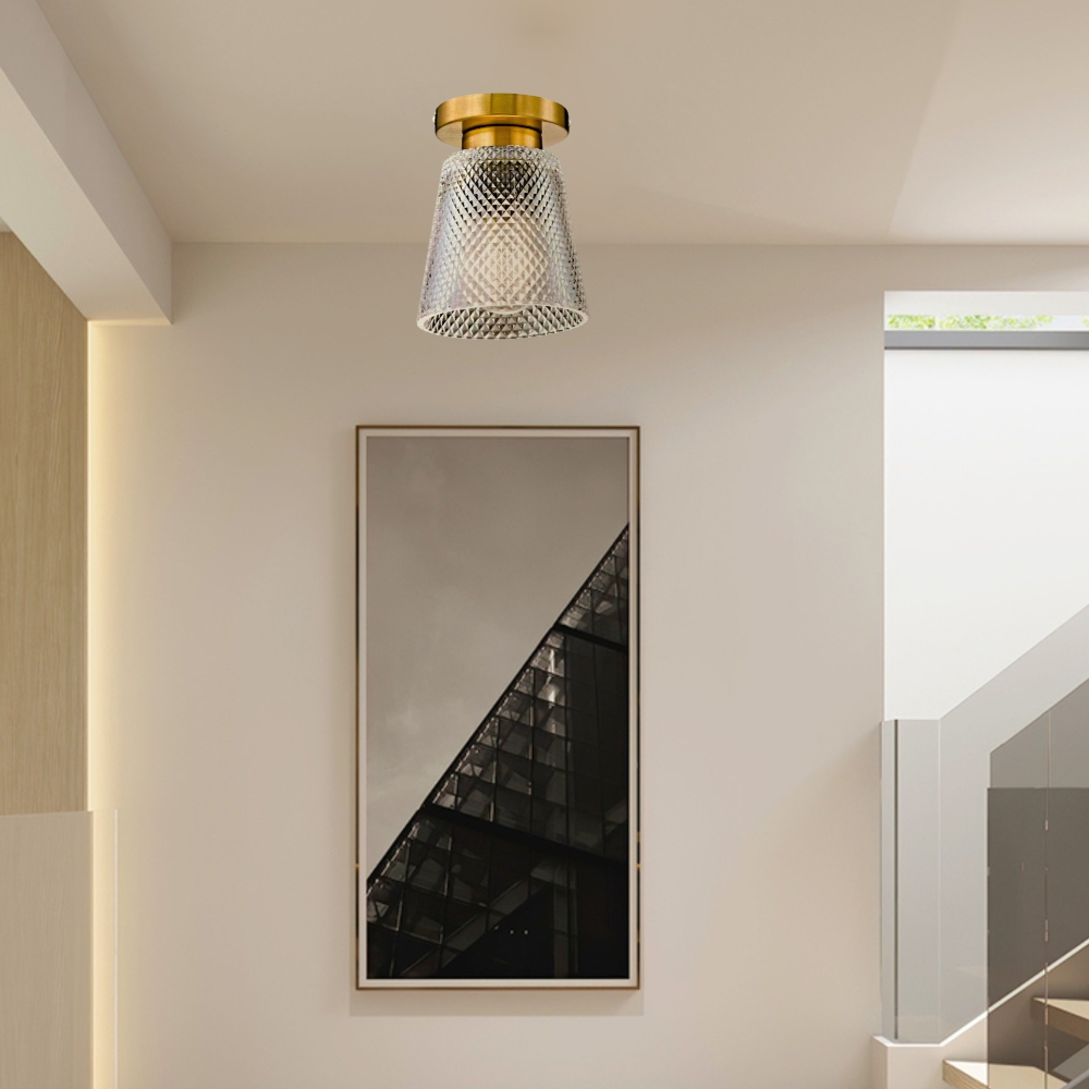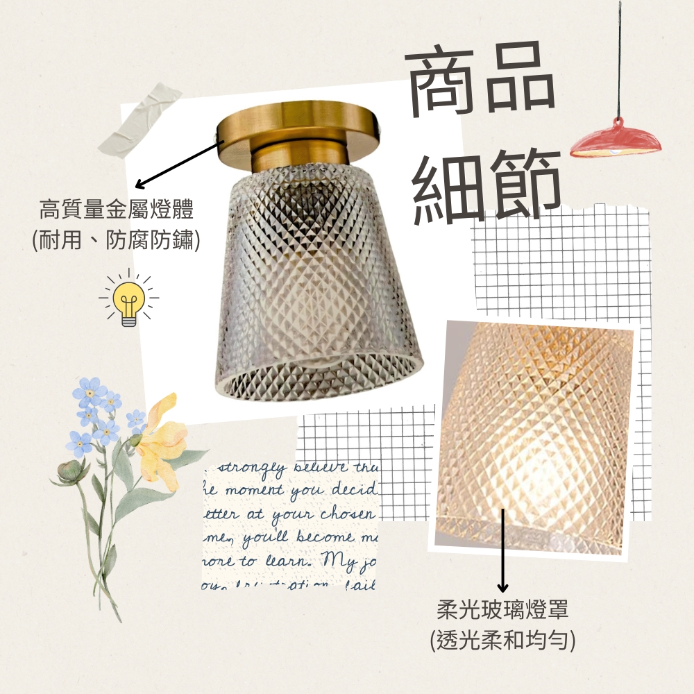 金屬燈體 + 立體壓花紋玻璃燈罩