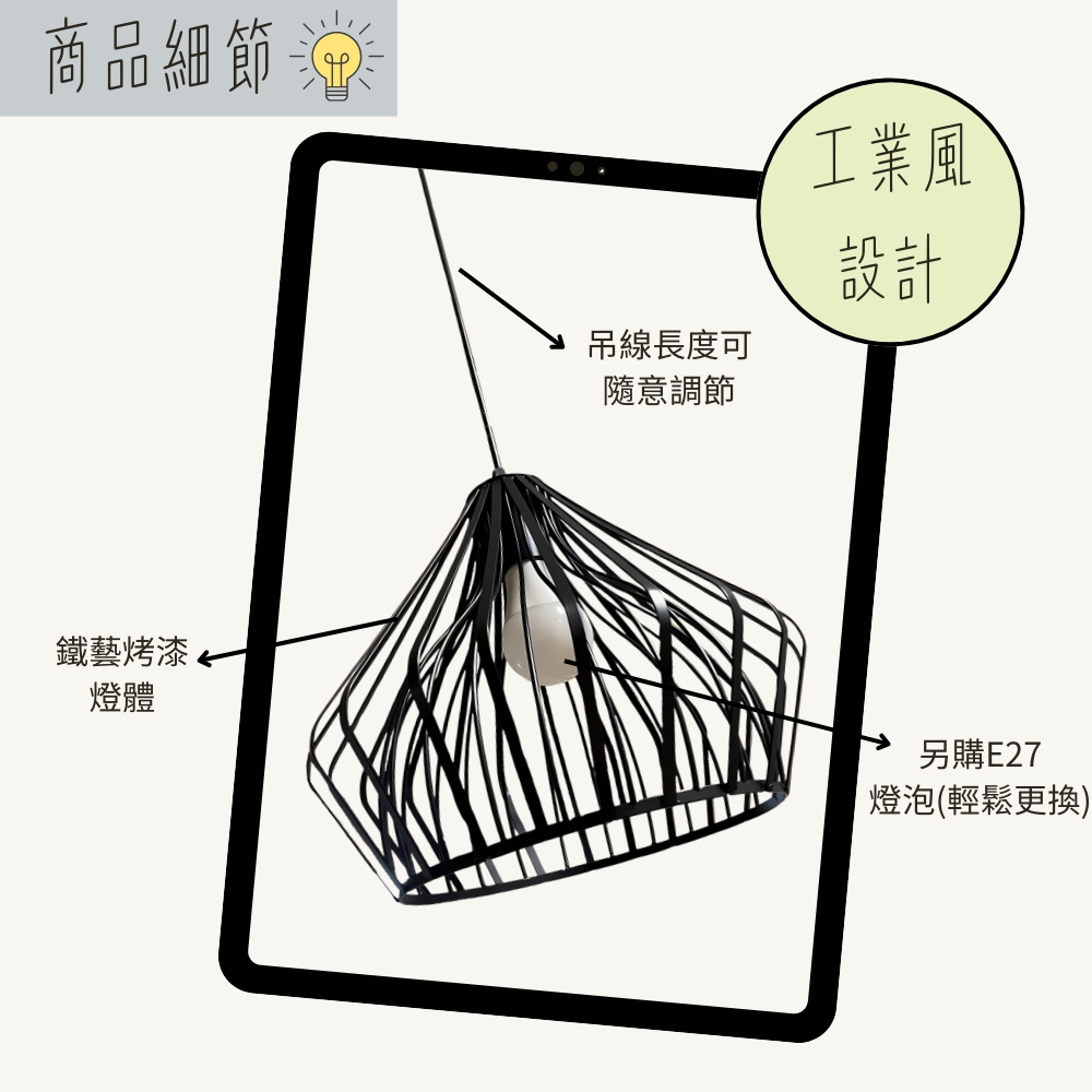 需另購E27燈頭燈泡*1