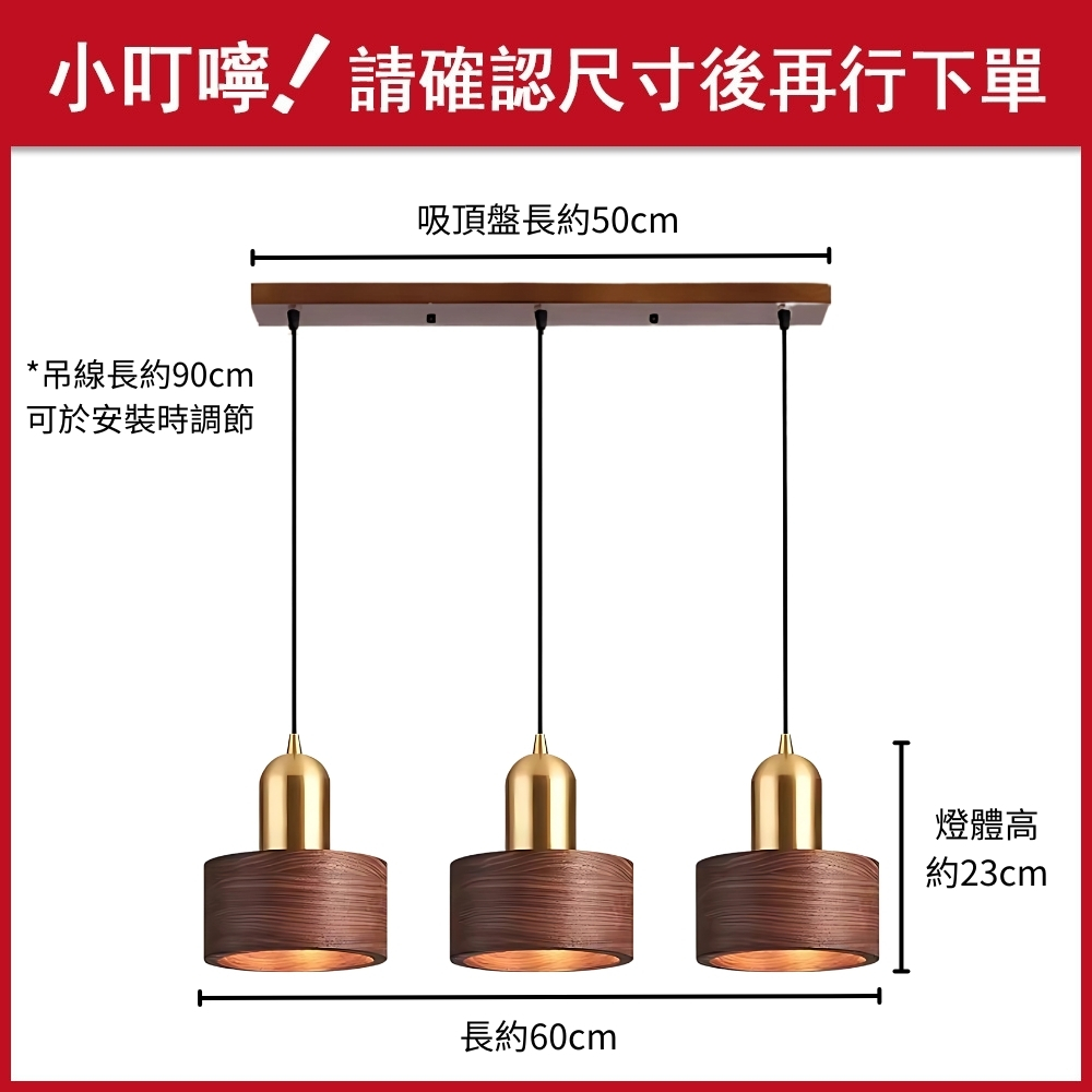 品名 梧桐雨細(深色)橫桿 3 吊燈 材質 金屬烤漆燈體 尺寸 燈體總長約60cm * 高約23cm (底盤長約50cm) (**附線約90cm於安裝時調整高度) 光源 需另購E27燈頭燈泡*3 適用 適用約3-5坪