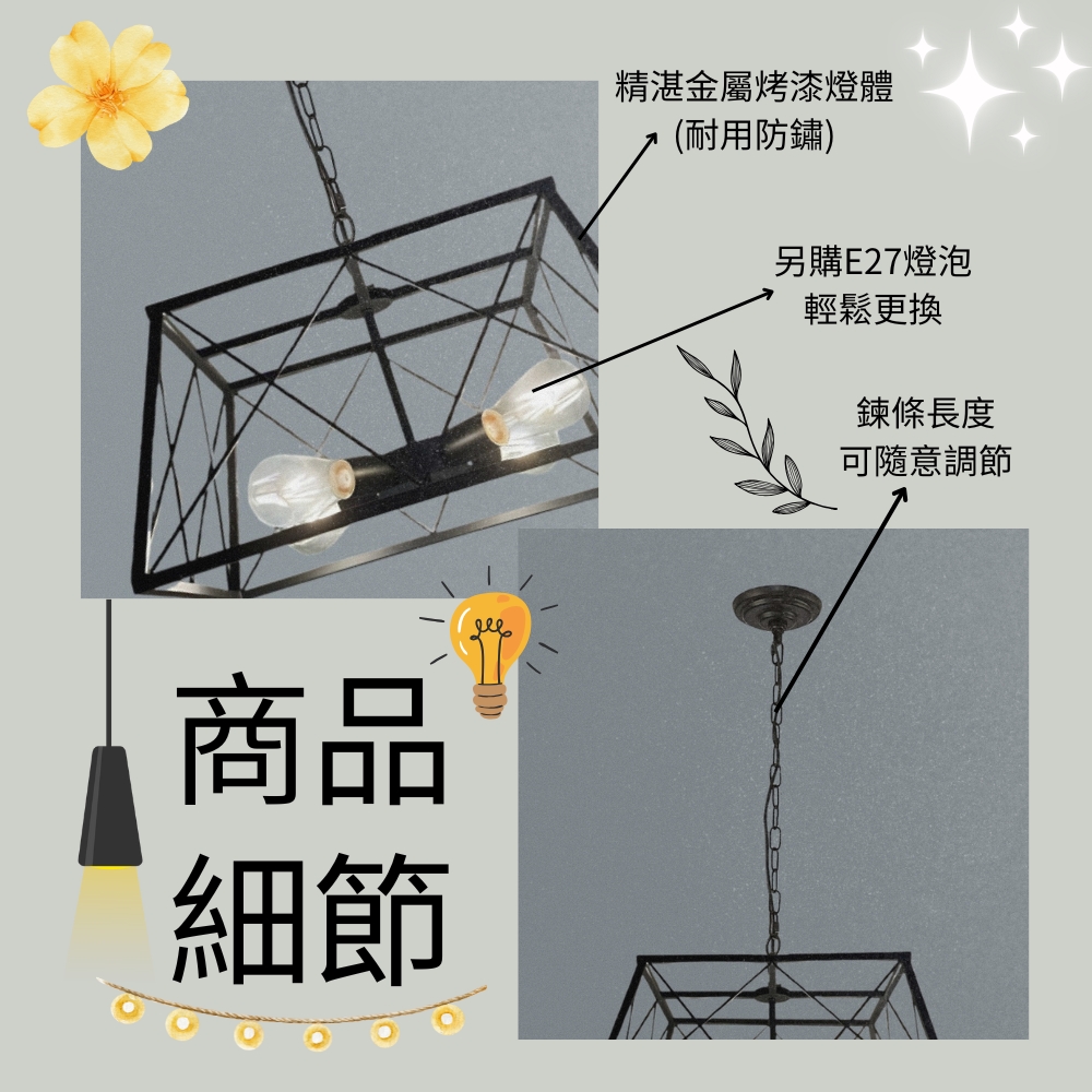 需另購E27燈頭燈泡*4