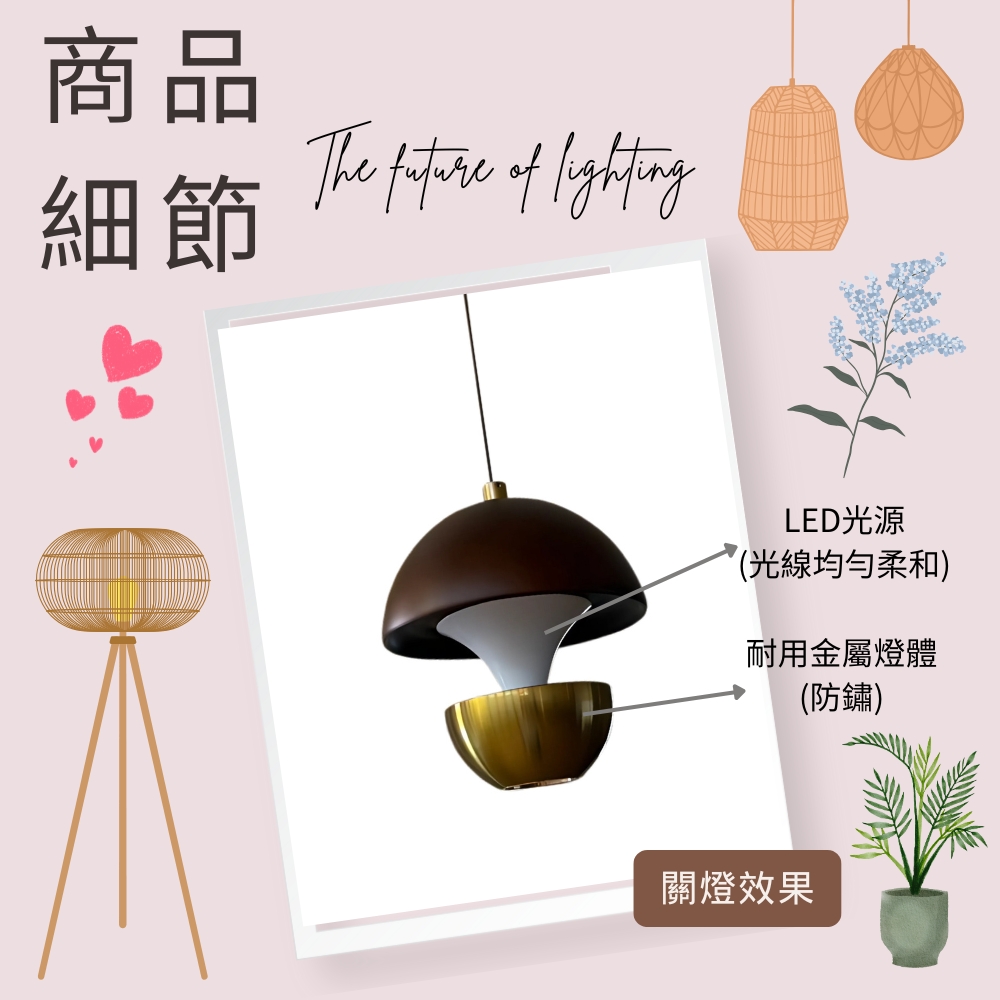 品名 LED 8W 向晚吊燈(自然光) 材質 金屬燈體 尺寸 燈體直徑約15cm * 高度約18cm 吸頂盤直徑約12cm (附線約90cm 可縮短調整) 光源 內附LED 8W (自然光) 適用 適用約1坪內