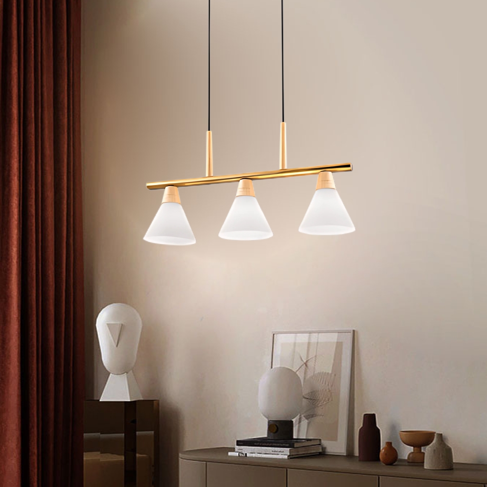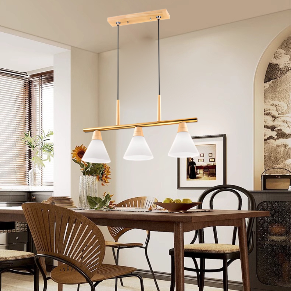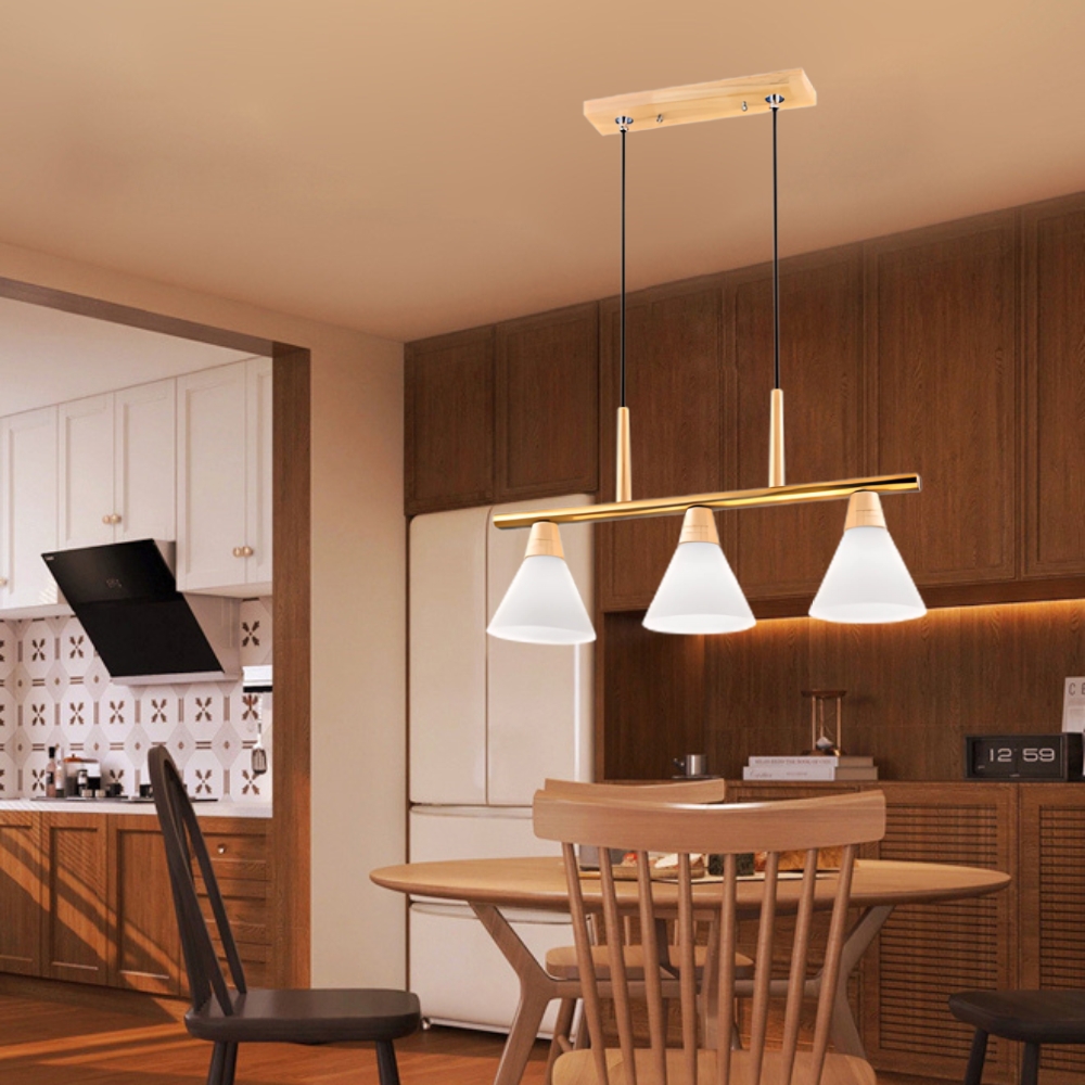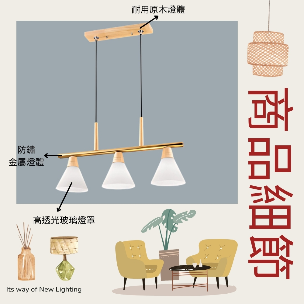 品名 堅持 3 原木/吊燈 (吸頂盤寬約8cm) 材質 金屬/原木燈體 + 玻璃燈罩 尺寸 燈體長約67cm * 高約30cm * 燈罩直徑約18cm 吸頂盤長約35cm * 寬約8cm (附線約90cm 可縮短調整) 光源 需另購E27燈頭燈泡*3 適用 適用約3-4坪
