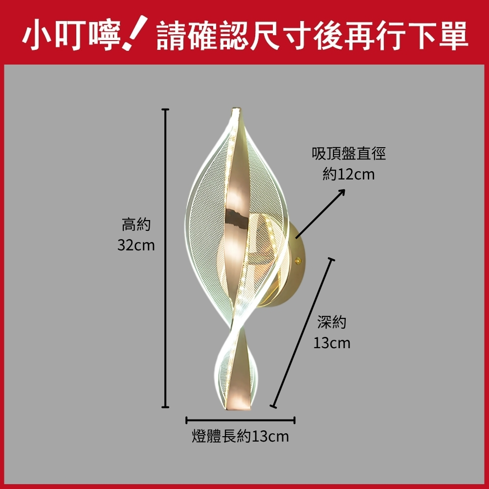 品名 LED 12W 旋律壁燈 (三色光) 材質 金屬 + 壓克力燈體 尺寸 燈體長約13cm * 高度約32cm * 深約13cm 吸頂盤直徑約12cm 光源 內附LED 12W (可壁切三色變光:白/黃/自然光) 適用 適用約1坪