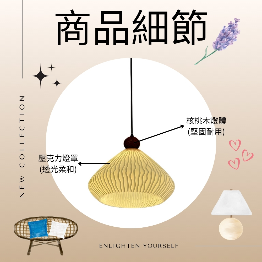 材質 木質燈體 + 壓克力燈罩