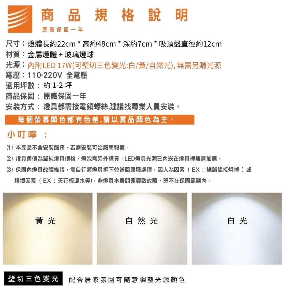 尺寸 燈體長約22m * 高約48cm * 深約7cm