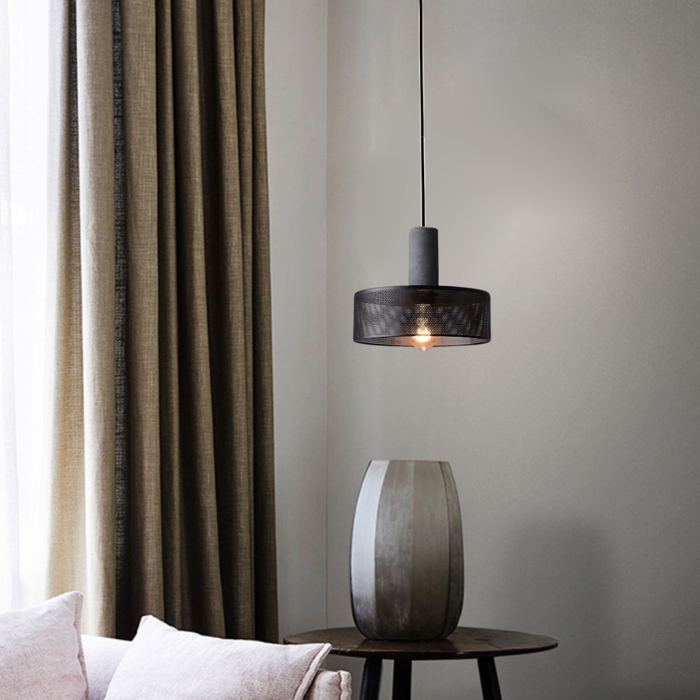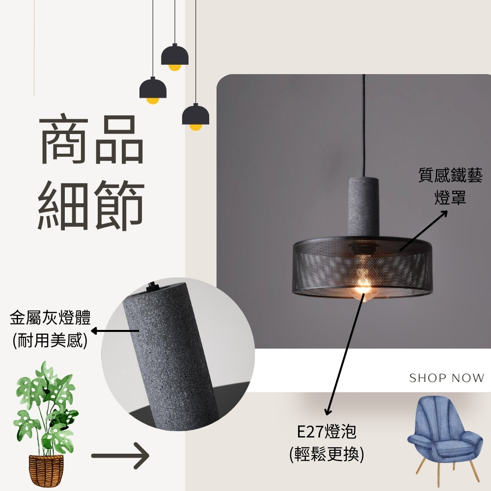金屬灰燈體+鐵藝燈罩