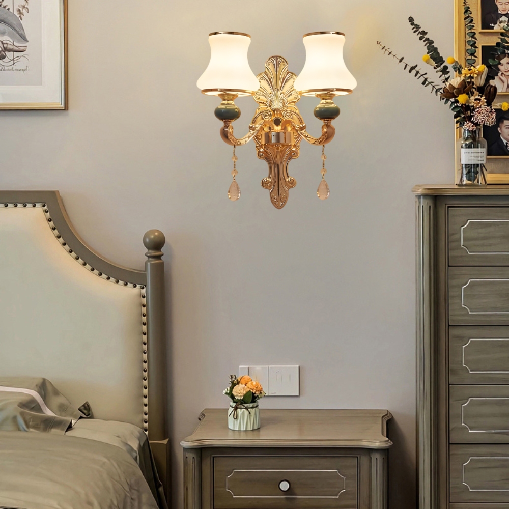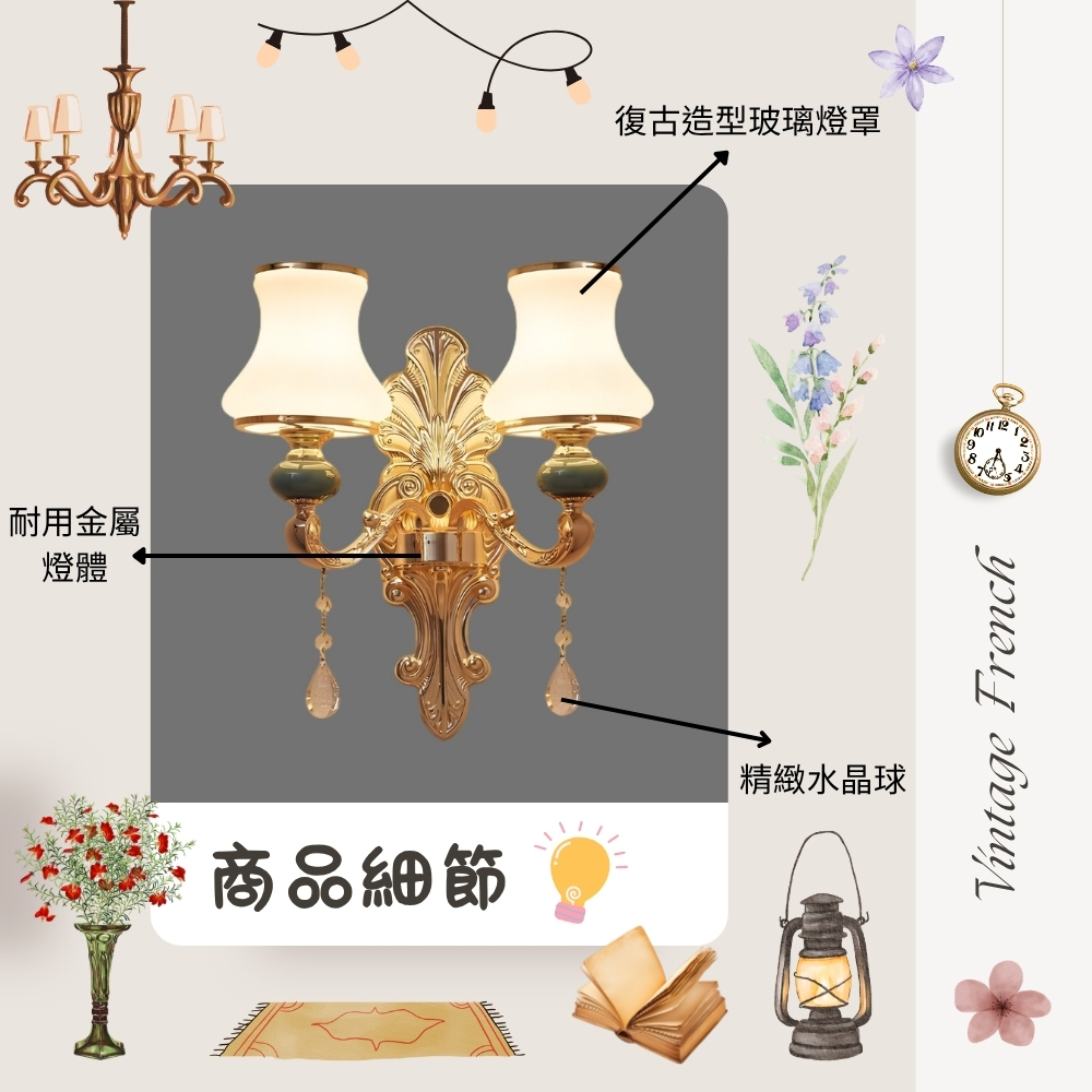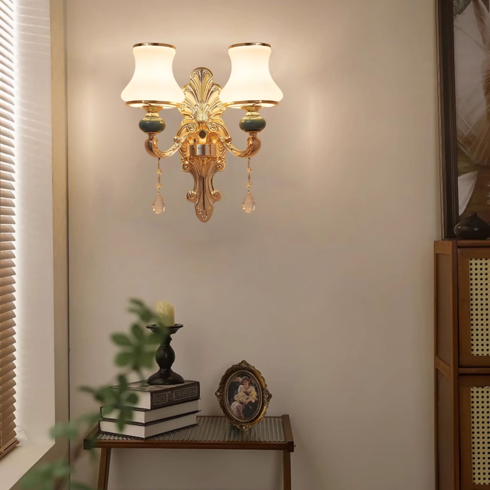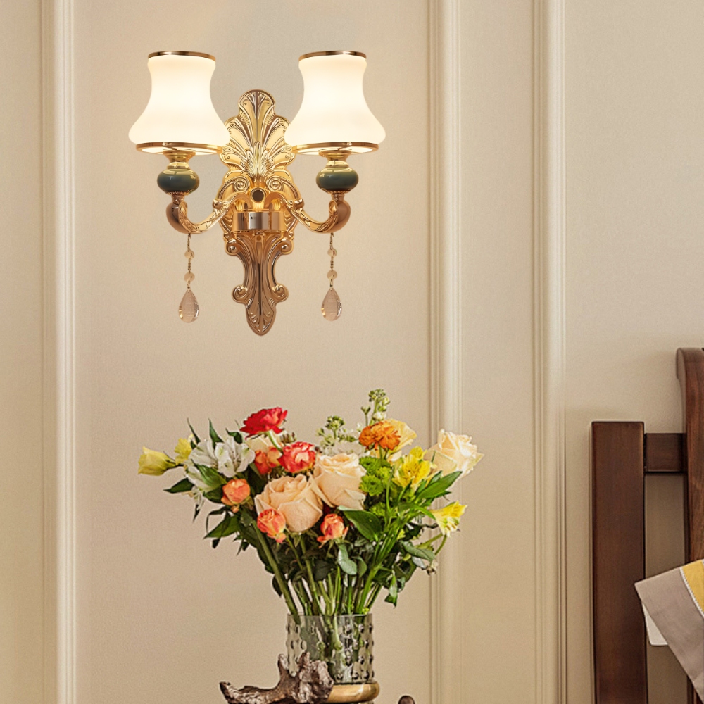 金屬燈體 +水晶掛墜 + 玻璃燈罩