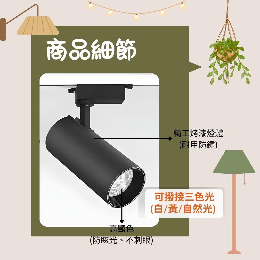 LED 15W COB三色撥接軌道燈 (兩色可選)