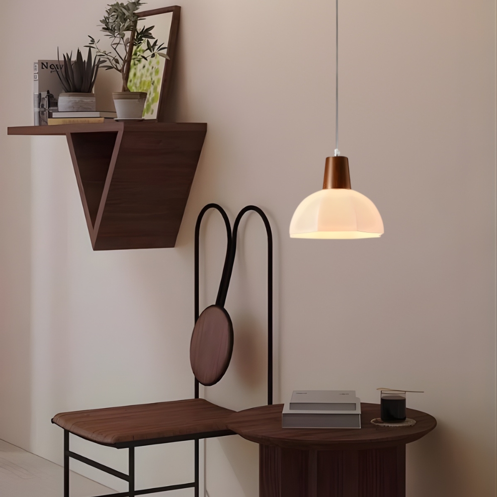 實木燈體 + 玻璃燈罩